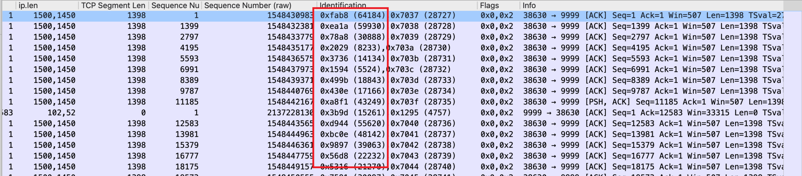 如果 DF 为0,ID 连续,比如 100,101,102,那么合成一个大包,大包的 ID 是 100,也可以逆向出来。但是如果 ID 不连续,比如 101,105,107,那么合成一个大包之后,就丢失原始的信息了。